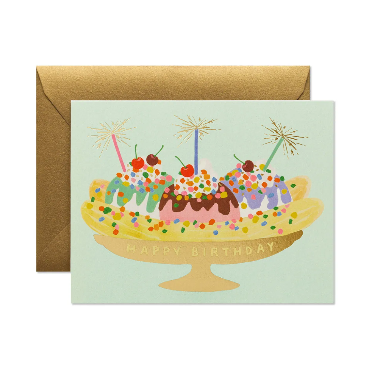 Dish up a tasty treat on your loved one’s birthday with the charming Banana Split Birthday Card from Rifle Paper Co.