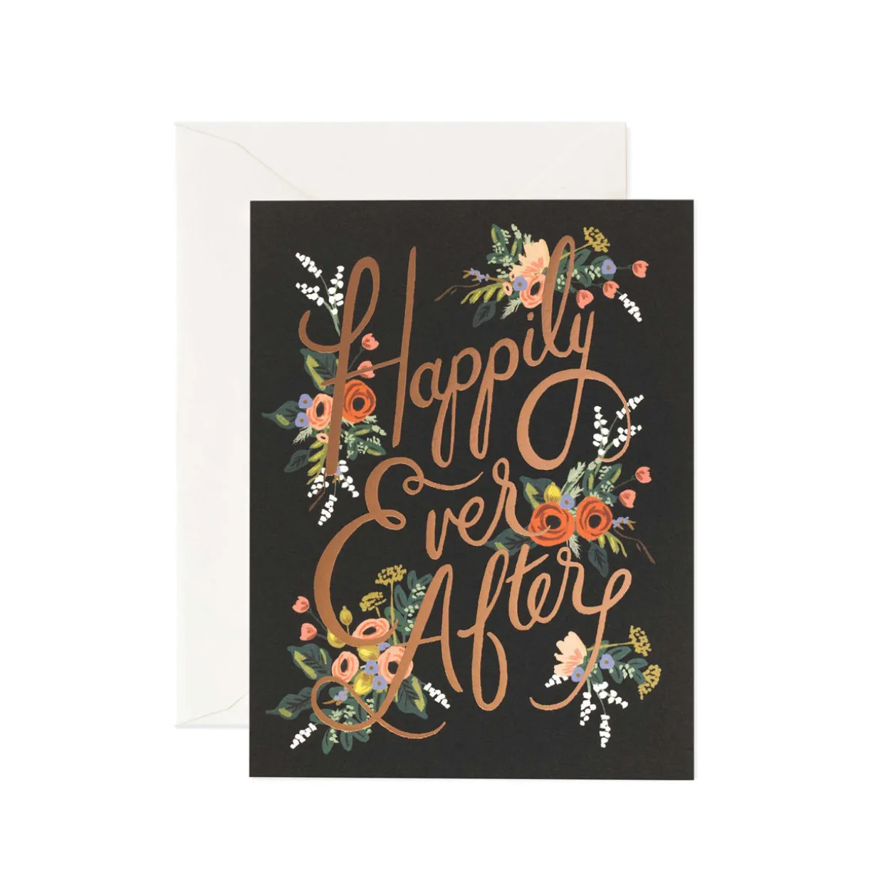 Send a delightful message to the happy couple on their special day with the whimsical typography and floral beauty of the Eternal Happily Ever After card from Rifle Paper Co. This illustrated card is blank inside and comes with its own high quality envelope. All Rifle Paper Co products are printed on high quality FSC-certified paper stocks.