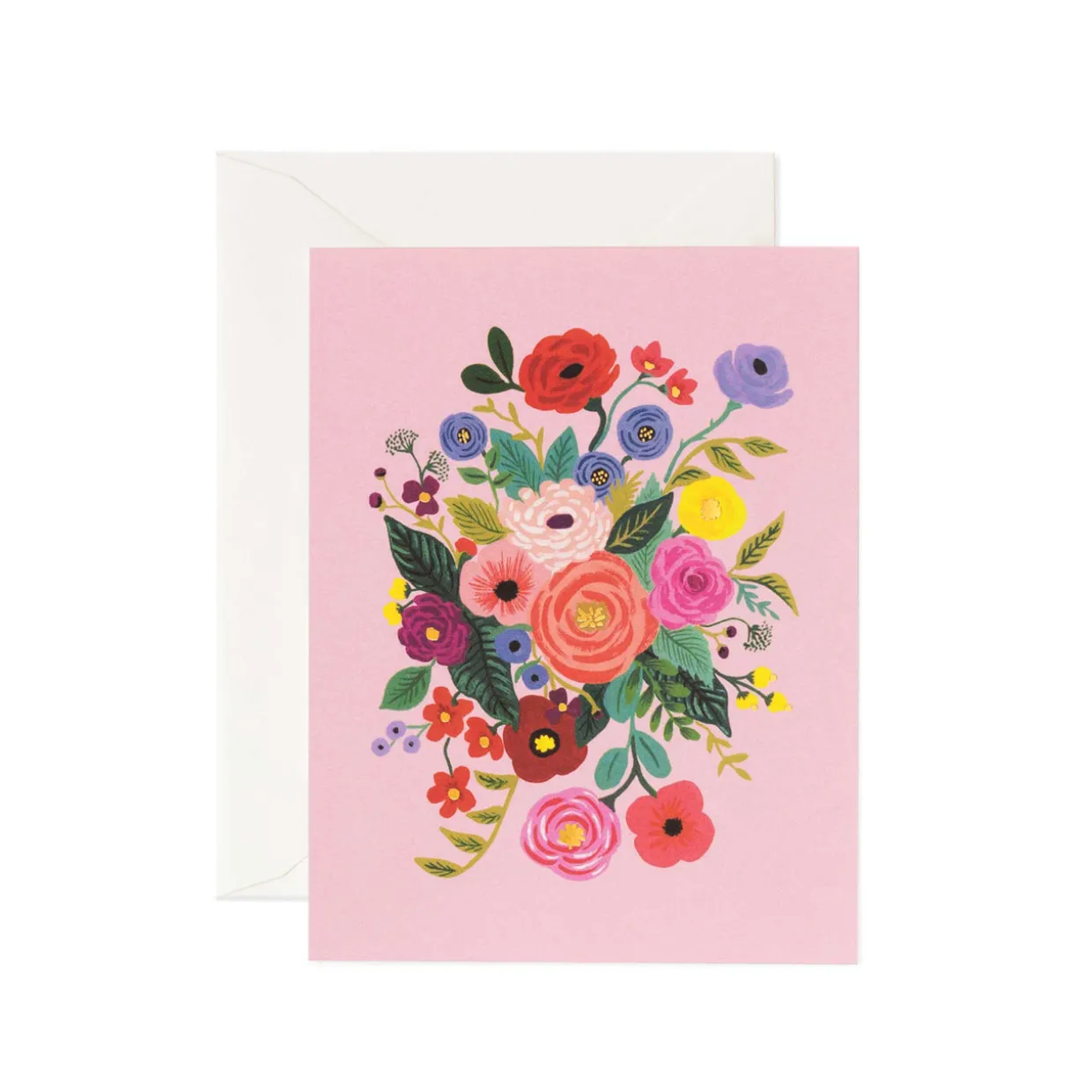 Add a vibrant floral energy to your greetings with the cheery Garden Party Rose card from Rifle Paper Co. This illustrated card is blank inside and comes with its own high quality envelope. All Rifle Paper Co products are printed on high quality FSC-certified paper stocks.