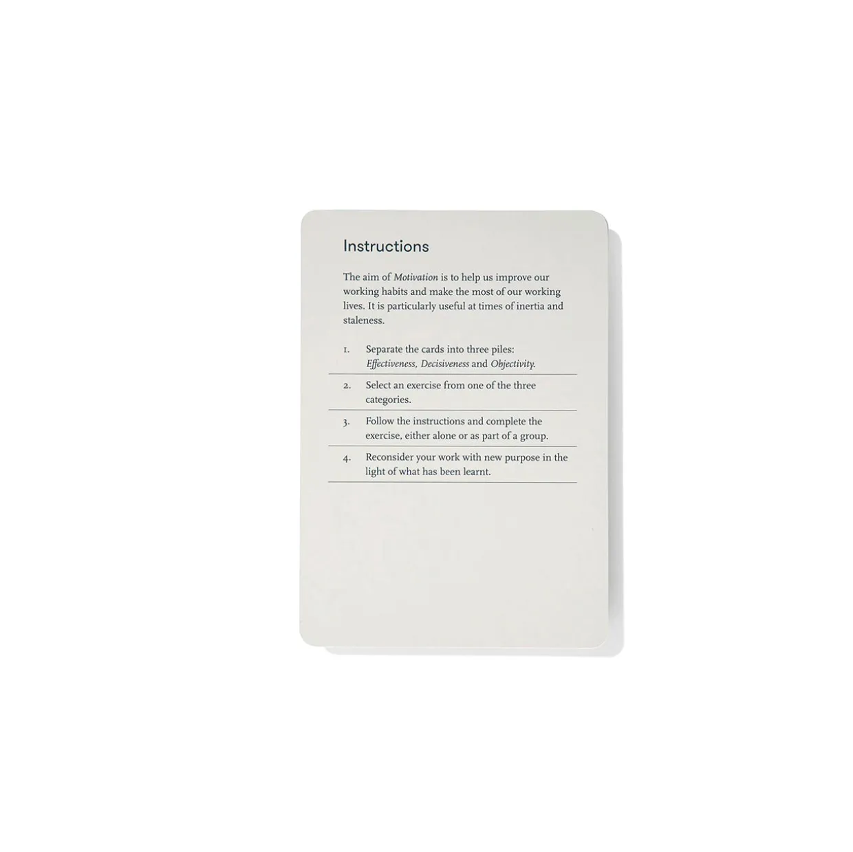 When you’re faced with one of those days where you just can’t seem to get started, or a project that just feels like a brick wall, the 52 prompts of the Motivation Card Set are a handy way to clear your head and make some forward movement. Imagine how Bob Dylan or Genghis Khan might approach the challenge that’s got you stalled; re-frame the issue as an art movement; consider what might clouding your judgement. The prompts found in this card set take you on a journey around the blockage, not through it; helping you to make a breakthrough with subtlety rather than brute force. It’s a deft approach to an all-too-common problem, and one that we could all use now and then.