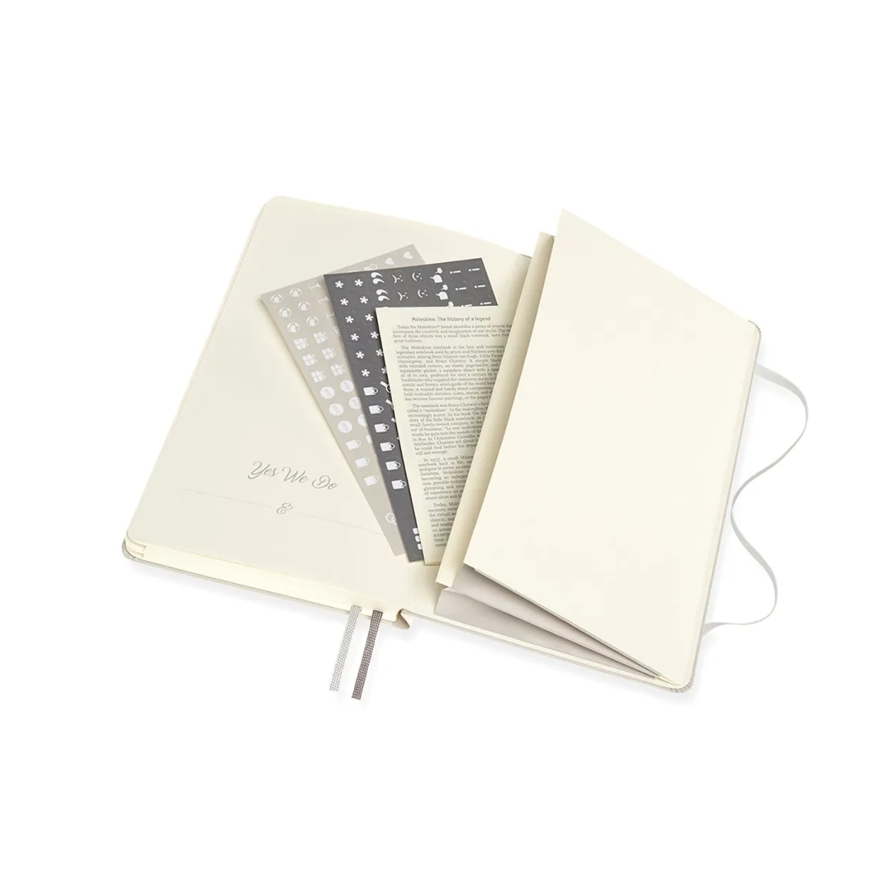 Features a premium box; 2 ribbon bookmarks; tabbed sections; themed introductory pages; double expandable Inner Pocket; two sticker sets