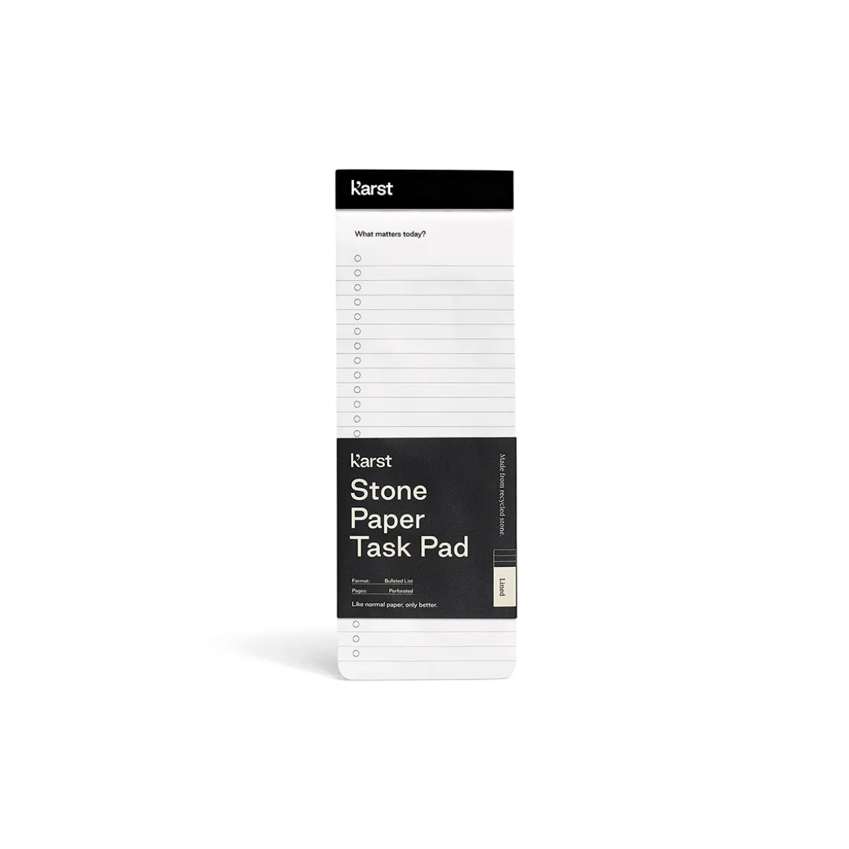 Made using their incredible tree-free paper, Karst’s Task Pad helps keep your attention on what matters, with space to plot out your daily to-do lists and schedules on each of its 60 slim sheets. Stone Paper’s unique waterproof construction and durable design mean this pad will be with you for the long haul, helping you focus on what matters so you can achieve the goals you set out.
