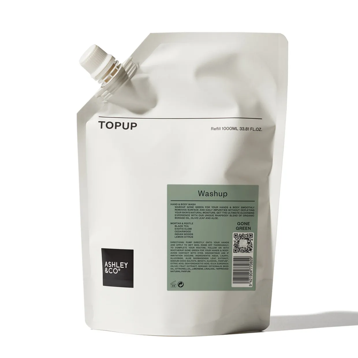 Freshen up for longer with the natural cleansing power and captivating scent of Ashley and Co’s WashUp Gone Green Hand and Body Wash Topup.