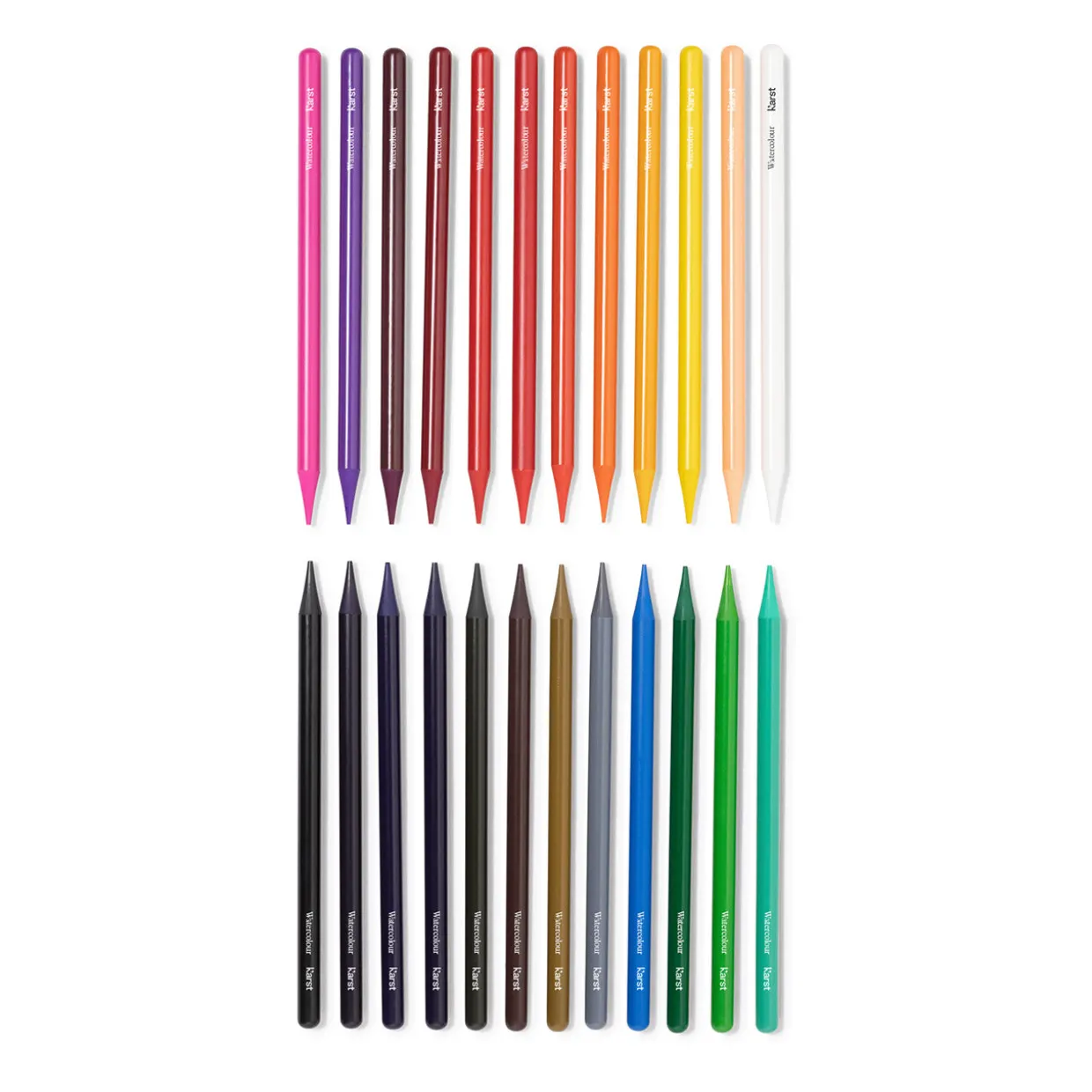 Featuring smooth, vibrant colour, the Woodless Watercolour Pencils sport 5 times the pigment of regular watercolour pencils, allowing you to fill more pages with your dreamy scenes. Simply sketch out your vision and apply water to see how the colours come to life, layering and blending to create all-new effects. Karst pencils use no wood, so in addition to unrestrained colour, you also avoid the mess of pencil shavings. And the unique box transforms to create an elegant display case for your pencils, so they’re just as beua
