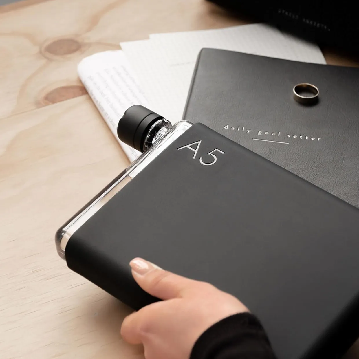 A mere 3cm thick, the A5 Drink Bottle slides neatly into your bag alongside notebooks, tablets and laptops to hold a massive amount of water without taking up a massive amount of room. Unlike traditional round drink bottles, which sit awkwardly no matter what else you’re carrying, the flat design of memobottle drink bottles allows for a Tetris-style fit that helps optimise your bag while helping keep you hydrated. Paired with its minimal yet sophisticated styling, it’s no surprise that memobottle keep winning design awards.