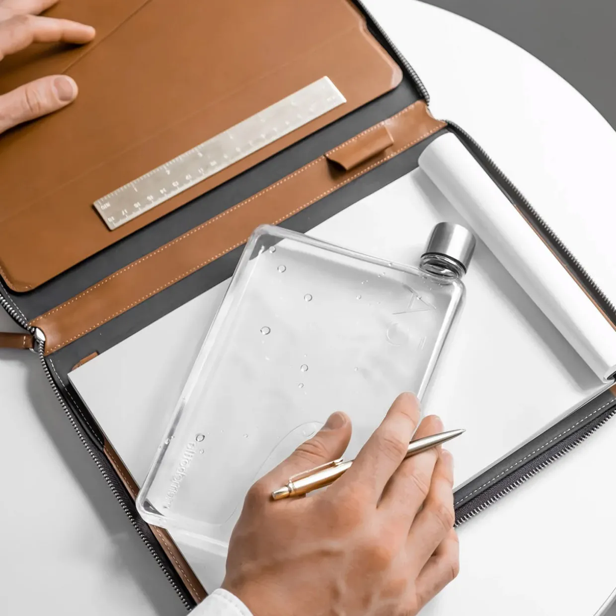 A mere 3cm thick, the A5 Drink Bottle slides neatly into your bag alongside notebooks, tablets and laptops to hold a massive amount of water without taking up a massive amount of room. Take your Memobottle everywhere you go to stay healthy, hydrated and stylish.