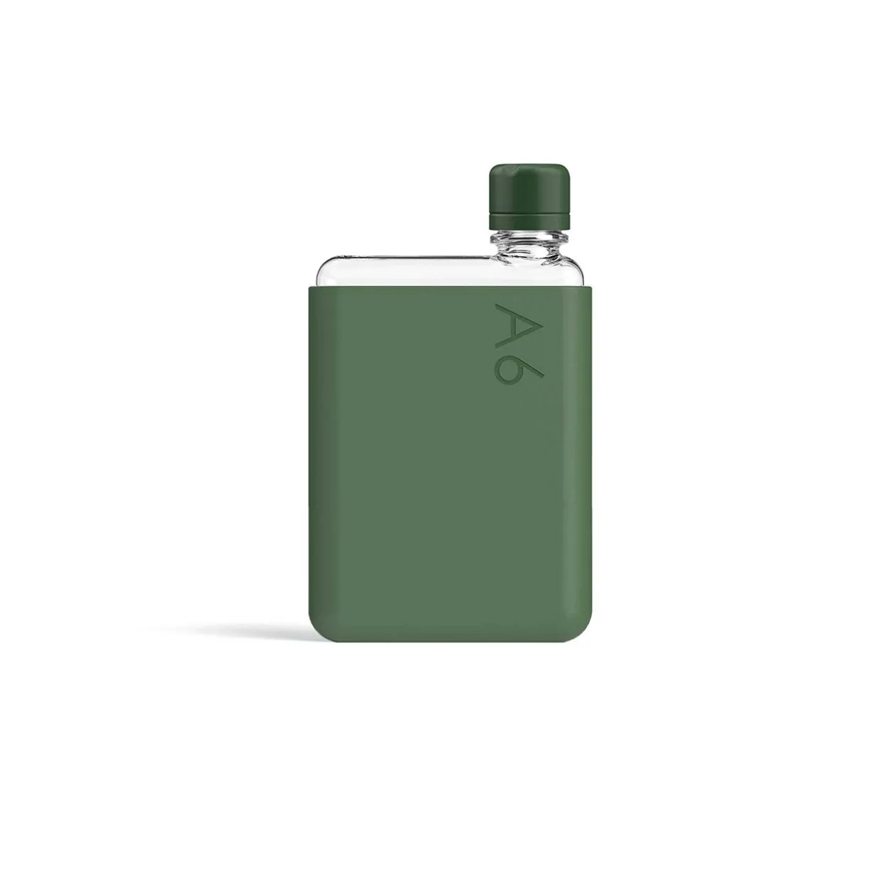 Slim and stylish, memobottle’s iconic A6 Drink Bottle is made even better with the colourful protection of the matching Moss Green Sleeve.
