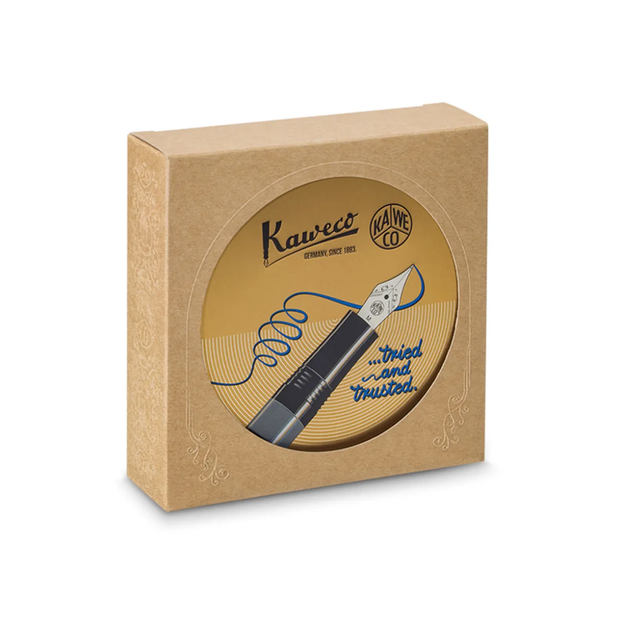 The Set is completed by a 32ml bottle of Kaweco’s own Royal Blue ink with which to fill the pen, and the Set is presented in an elegant metal tin that evokes Kaweco’s long history of fine pencraft.