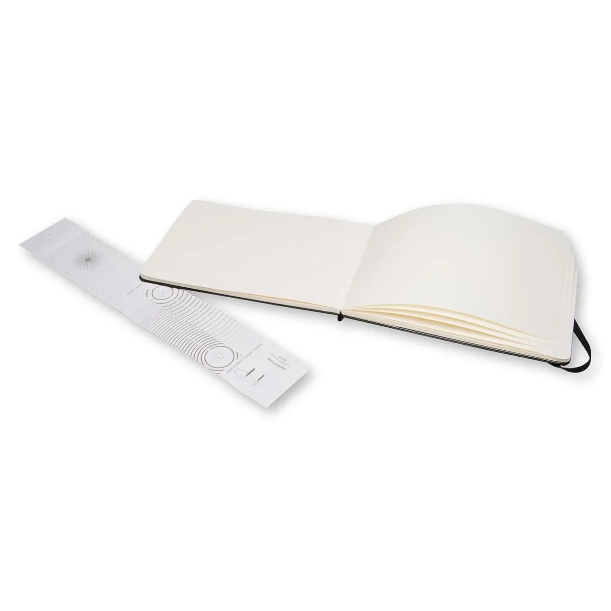 Features specially made 200gsm cold-pressed paper; thread bound; 25% cotton; expandable inner pocket; Moleskine history inside