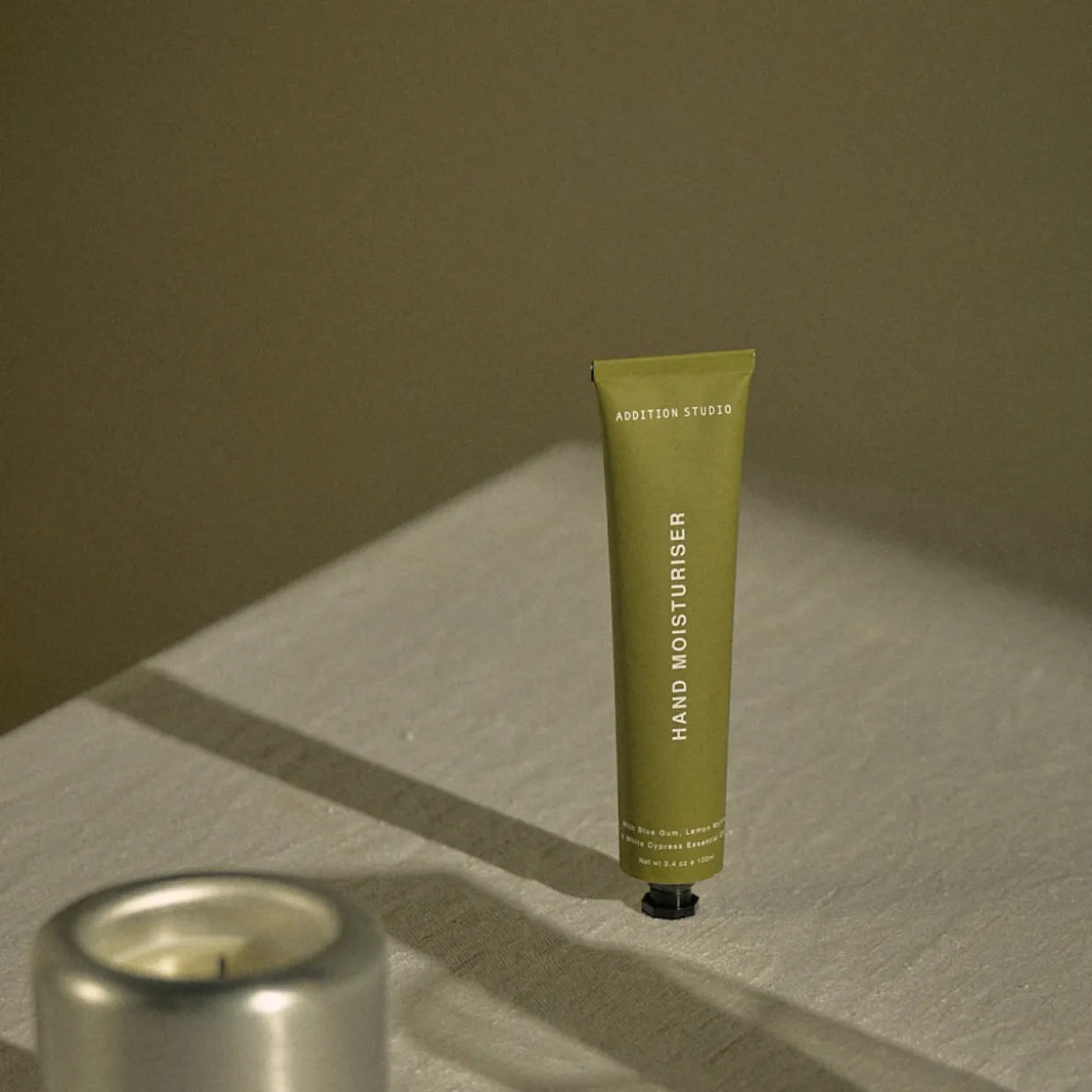 Nourish your skin with the invigorating blend of Australian native flora and antibody-rich green tea extract in Addition Studio’s Blue Gum and Lemon Myrtle Hand Cream.