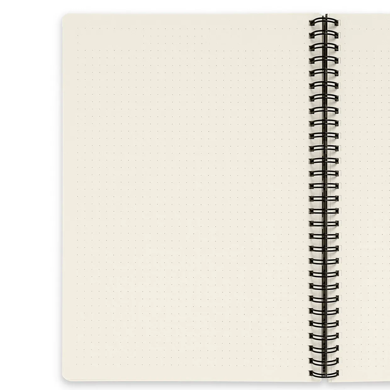 The Bound Notebook’s eye-catching two-tone cover is only the start, with contrasting endpapers in a dazzling geometric design that almost seems alive, moving and shifting before your eyes. It’s a surprise burst of colour and energy carefully chosen to spark your imagination every time you open your Bound Notebook. Featuring splash-proof plastic covers, the Bound Bright Notebook is simple and hard-wearing enough for your everyday adventures. These notebooks don’t belong on a shelf, saved for a special occasion – they’re ready for the rough and tumble of the everyday, moving with you through life so you’ve always got a creative space close by. Its binding is designed to lay flat, ready for you to capture inspiration as it strikes no matter where your day takes you. And when you’ve filled your notebook with your thoughts, ideas, diagrams, plans and anything else you can imagine, the covers are 100% recyclable, so you can pop the covers in plastic recycling and the pages in your paper waste to reuse those precious materials.