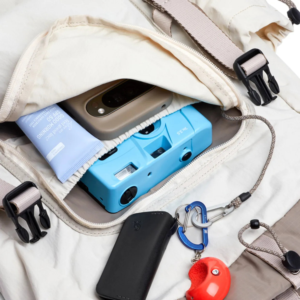 The Cinch Backpack is made of fabrics from recycled sources such as plastic PET bottles, industrial nylon offcuts and fishing nets. That fabric helps to keep things lightweight and rugged, while reducing your impact on the planet – a win-win situation if ever there were one.