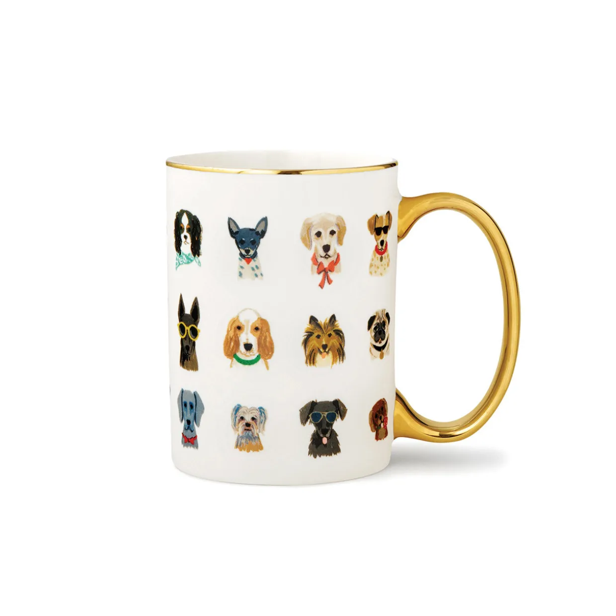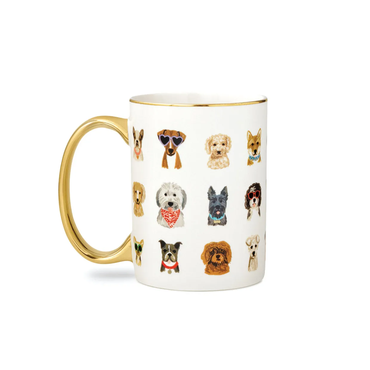 Featuring a charming canine design in classic Rifle Paper Co. style, this delightful mug promises to brighten your day before you’ve even taken a sip. The natural warmth of porcelain and the elegant gold trim only add to the feeling of puppy love!