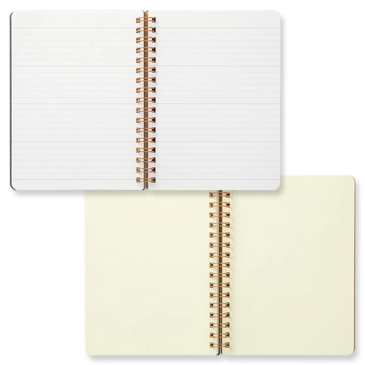 Inside, the B6 notebook contains 200 pages: 100 white, ruled pages and 100 creamy, plain pages.