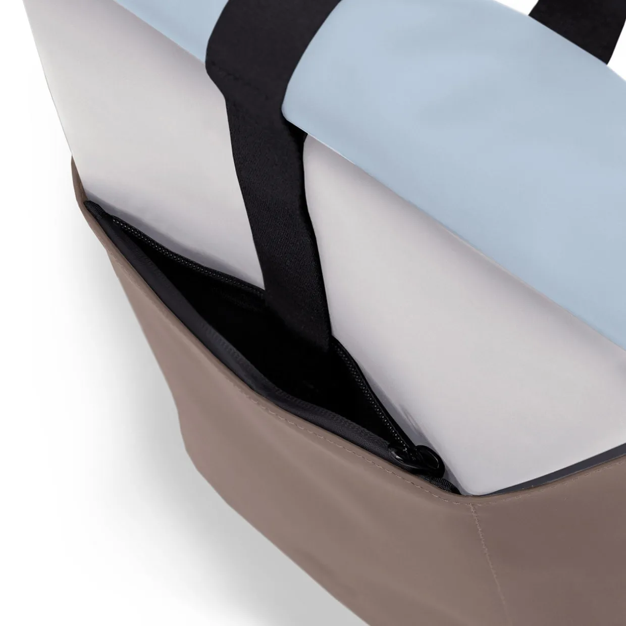 The rolltop closure makes it easy to load up your bag, while the quick-access zip on the side helps you get at your gear when you need it. The Hajo Backpack is made using recycled polyester drawn from pre-and post-consumer textile waste. Reusing materials helps to reduce carbon production compared to using virgin materials, and also reduces the amount of waste that goes into landfill.