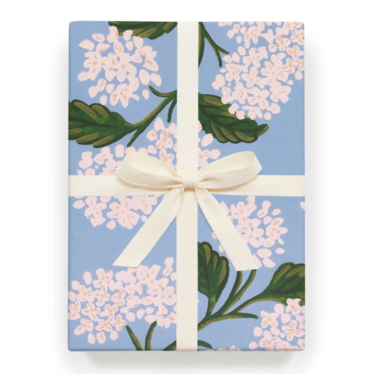 The beautiful original illustrations and designs from Rifle Paper Co. have made Rifle world famous among lovers of paper goods and design. Add a special finishing touch to your gifts with this wonderful wrap from Rifle Paper Co. that features designer Anna Bond’s classic illustrations. This beautiful wrapping paper features the Hydrangea floral print on a pale blue background. Perfect for wrapping gifts, using as drawer liners or for special art projects. All Rifle Paper Co. wrapping paper is printed on high quality FSC-certified paper stock.