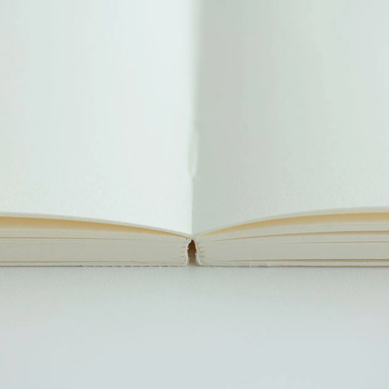 The MD notebook is created using traditional thread-stitched book-binding methods, with 16 pages of paper folded into a bundle and stitched down the spine for durability and a perfect lay-flat design opening to 180 degrees.