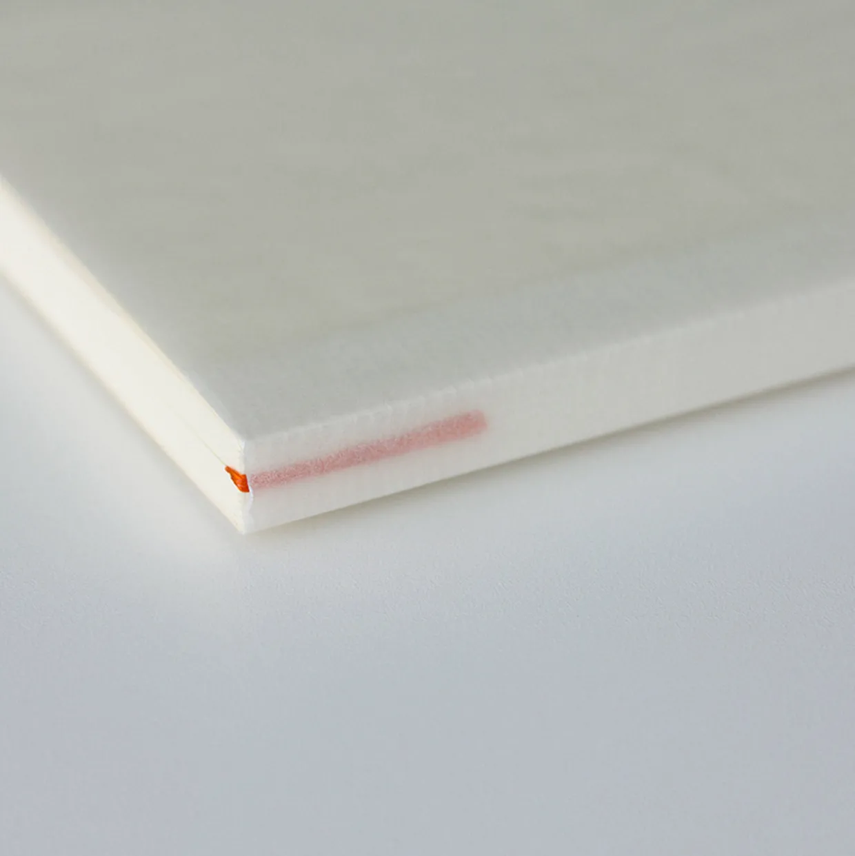 Designed for writer’s comfort, the MD notebook with fountain pen friendly pages allows you to write down ideas freely as they come to you, or even using a double page as a canvas for your thoughts. The B6 Slim design is similar in form to a paperback book, making it a comfortable notebook to carry with you in your bag or purse. Designed deliberately with no cover but instead with a cheesecloth mesh tape appended to the spine in plain sight, a coloured bookmark and index label sticker, this B6 Slim notebook with 176 pages is designed with a minimalist approach for ease of use to enhance the enjoyment of writing. This MD notebook is created using traditional thread-stitched book-binding methods, with 16 pages of paper folded into a bundle and stitched down the spine for durability and a perfect lay-flat design opening to 180 degrees.