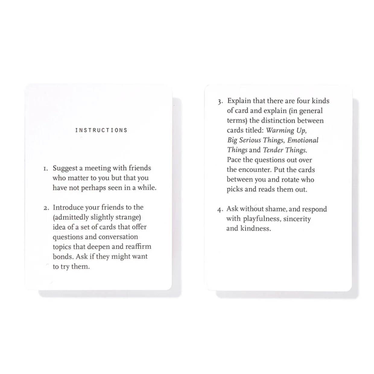 Plus, you’ve got a lot to catch up on, so organise a time to have a coffee with a mate, and bust out The School of Life’s Meeting Friends Conversation Cards to get to know you’re bestie all over again. This set of 52 cards has a bunch of interesting and insightful prompts to get you and your friends talking about the meaningful parts of yourselves. Broken into four categories (Warming Up, Big Serious Things, Emotional Things and Tender Things), Meeting Friends invites you to be honest and vulnerable with your friends, and to enjoy discovering new aspects of the people you know best.