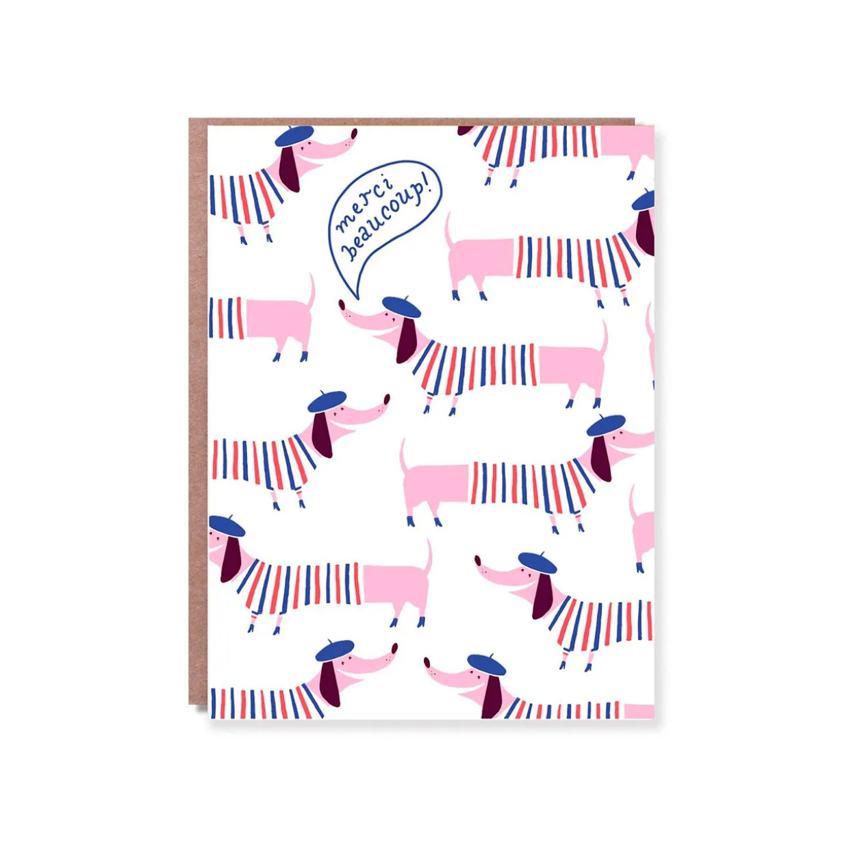 Add a continental touch to your thank you note with the Parisian Merci Frenchie card from Hello!Lucky.