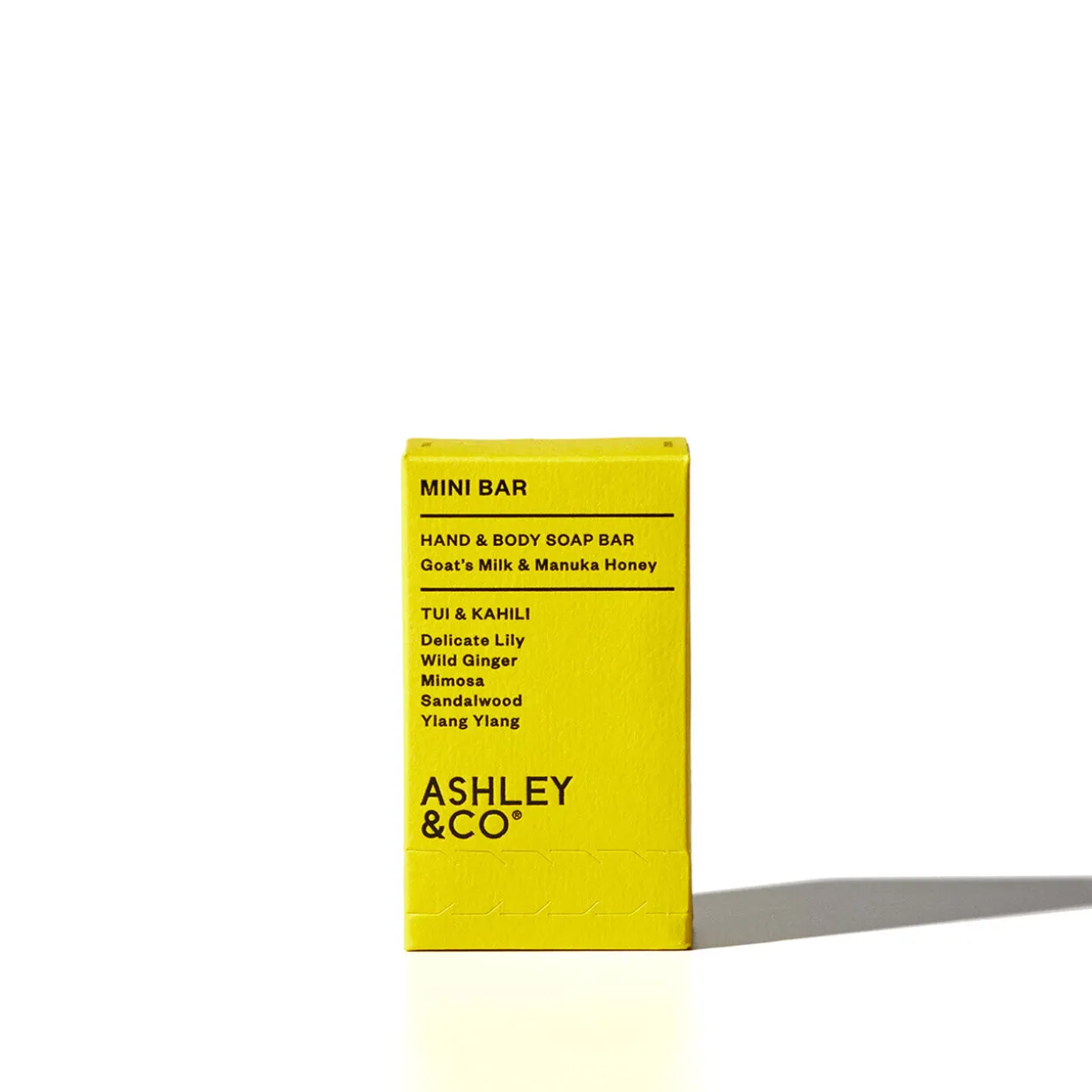 Freshen your hands and body with the gentle cleansing and delightful scent of Ashley and Co’s Tui and Kahili Mini Bar Soap.
