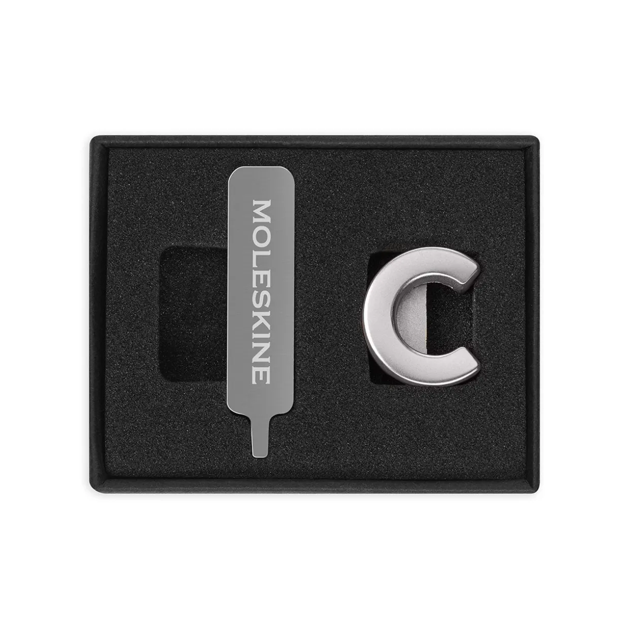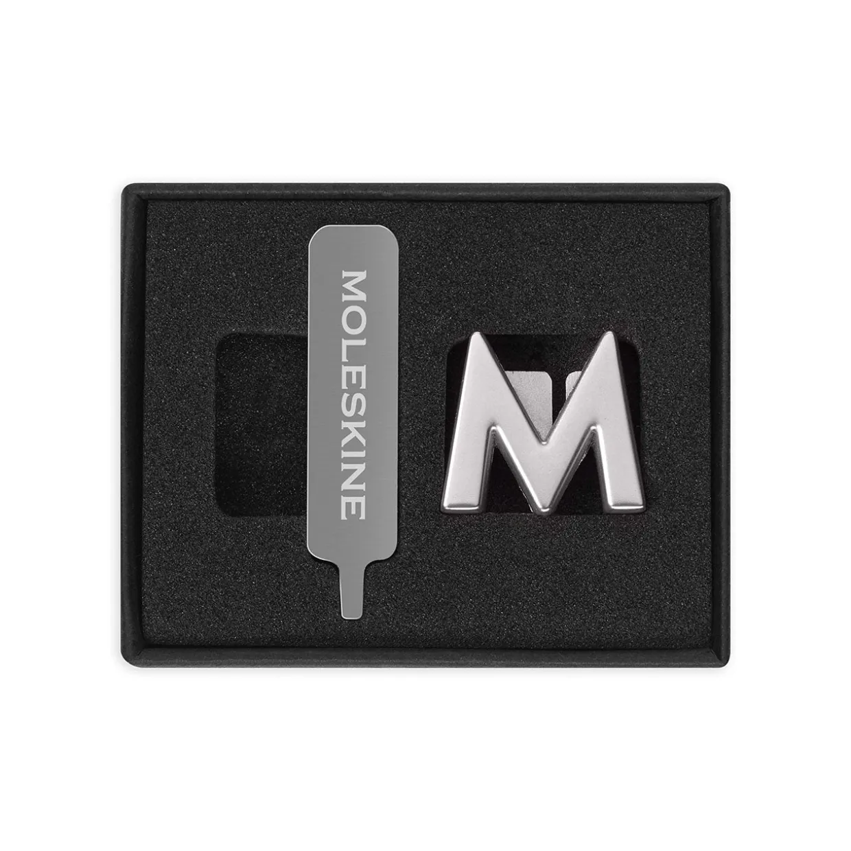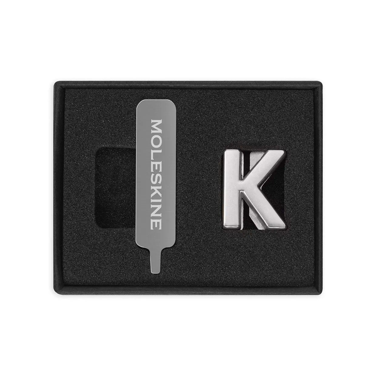 Each pin is made of solid metal, and comes with a custom screwdriver to help you attach it to the strap of your best-loved Moleskine. Decorate your notebook with your initials, or a short word that means a lot to you, or just add some fun hearts and stars to brighten your day.