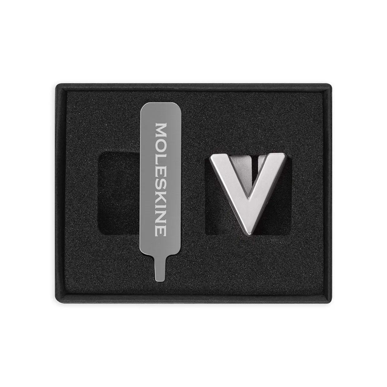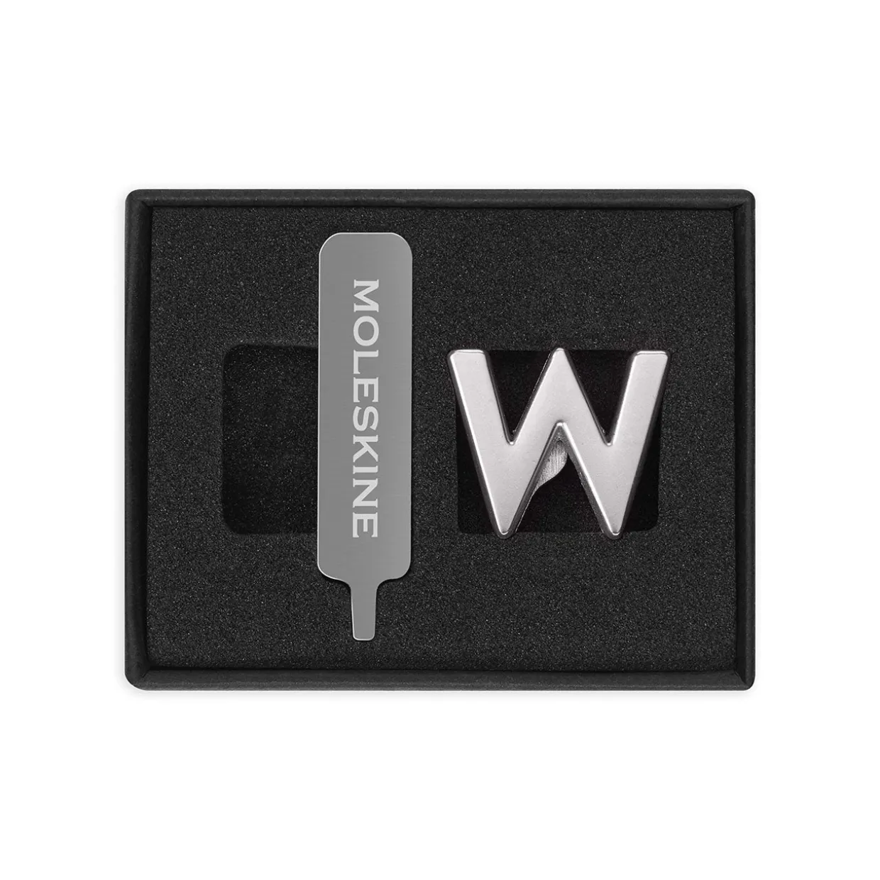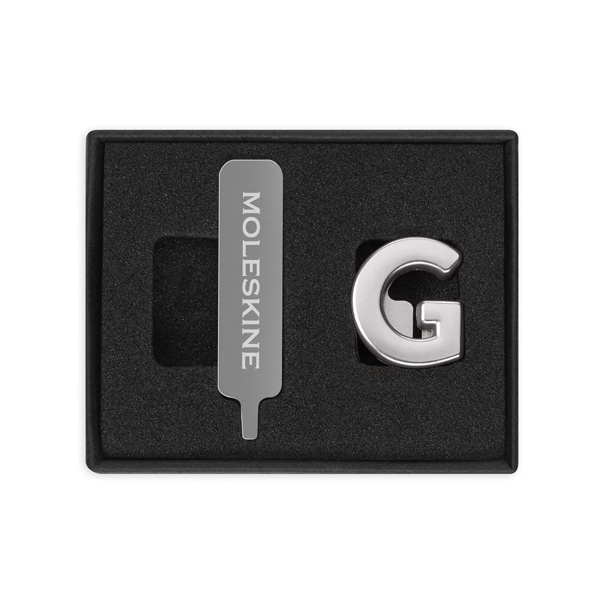 Each pin is made of solid metal, and comes with a custom screwdriver to help you attach it to the strap of your best-loved Moleskine. Decorate your notebook with your initials, or a short word that means a lot to you, or just add some fun hearts and stars to brighten your day.