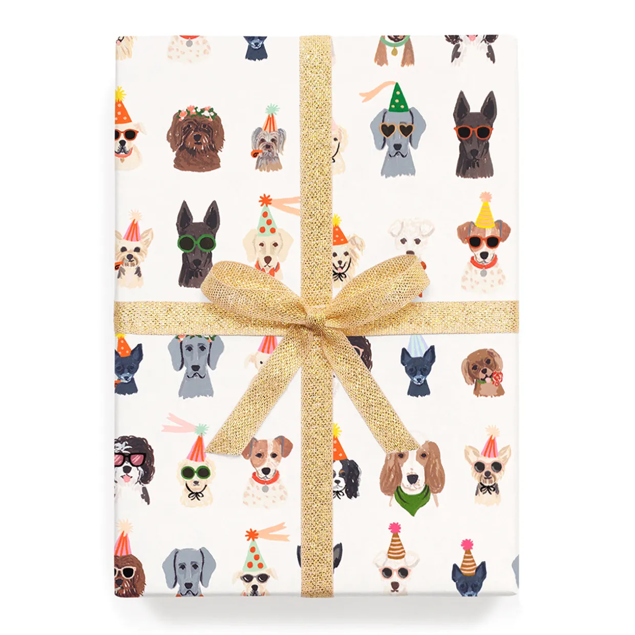 Say “I ruff you” with the puppy perfection of Rifle Paper Co.’s good boy Party Dogs Wrapping Sheet.
