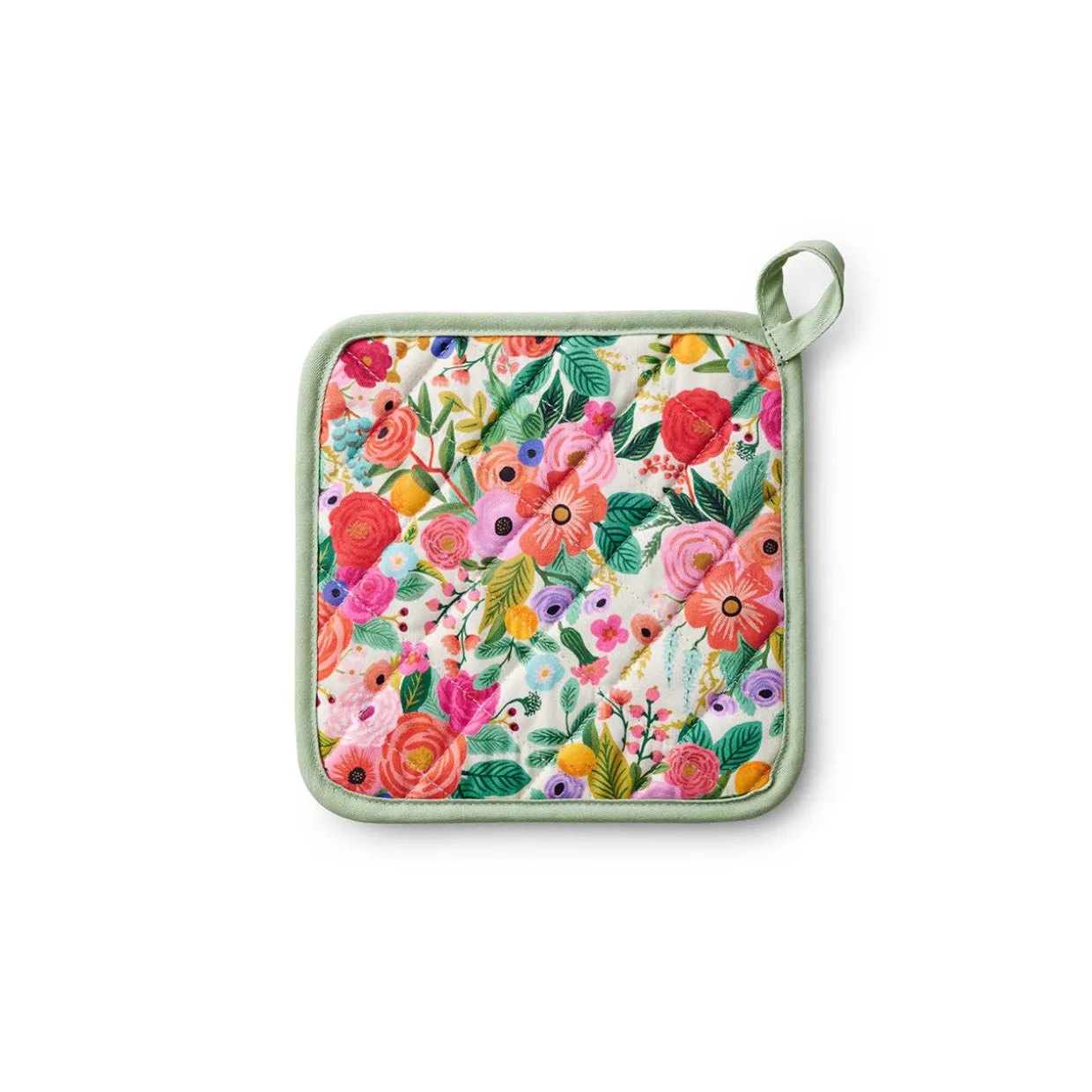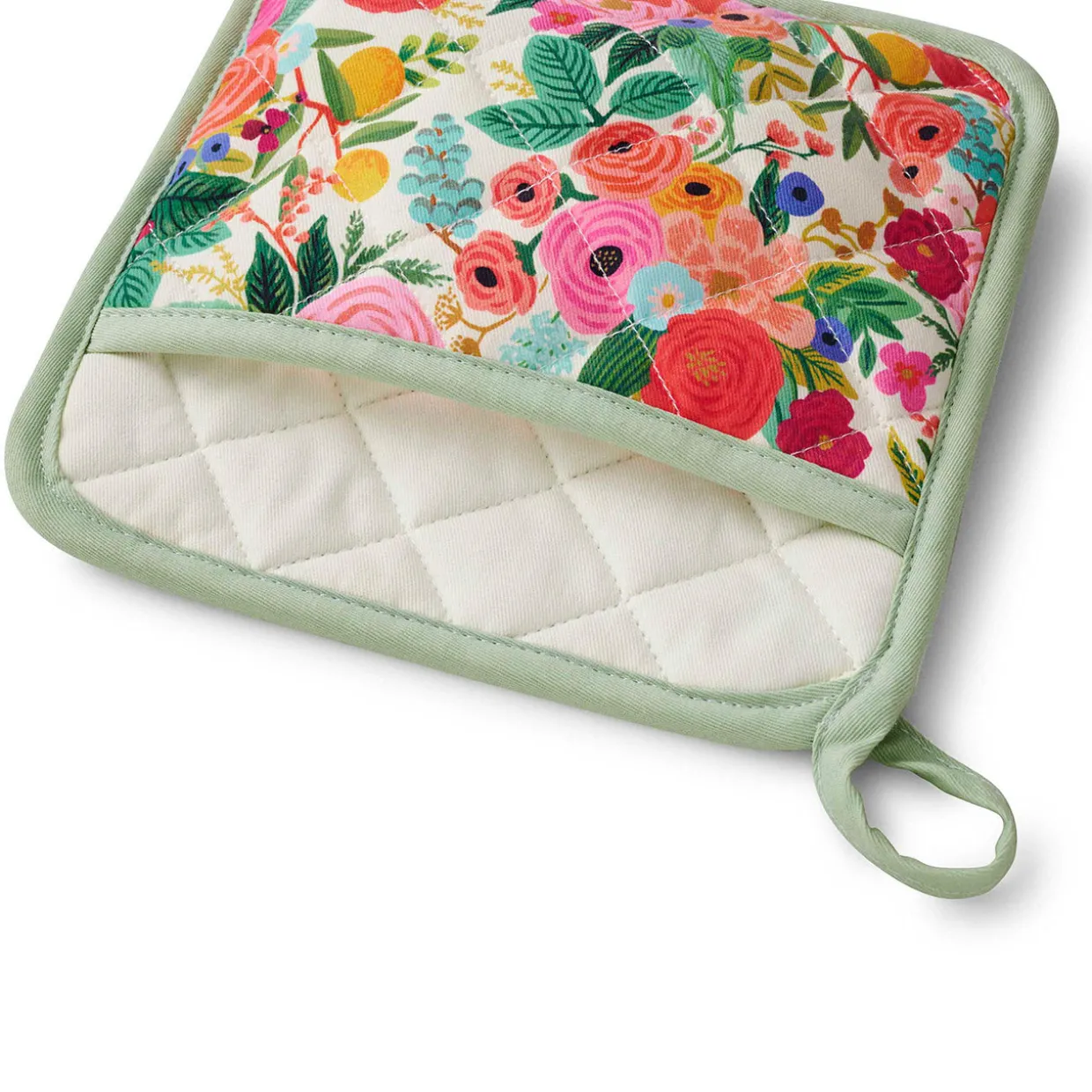 Protect your hands in style with the charming and practical design of Rifle Paper Co.’s delightful Pot Holder.