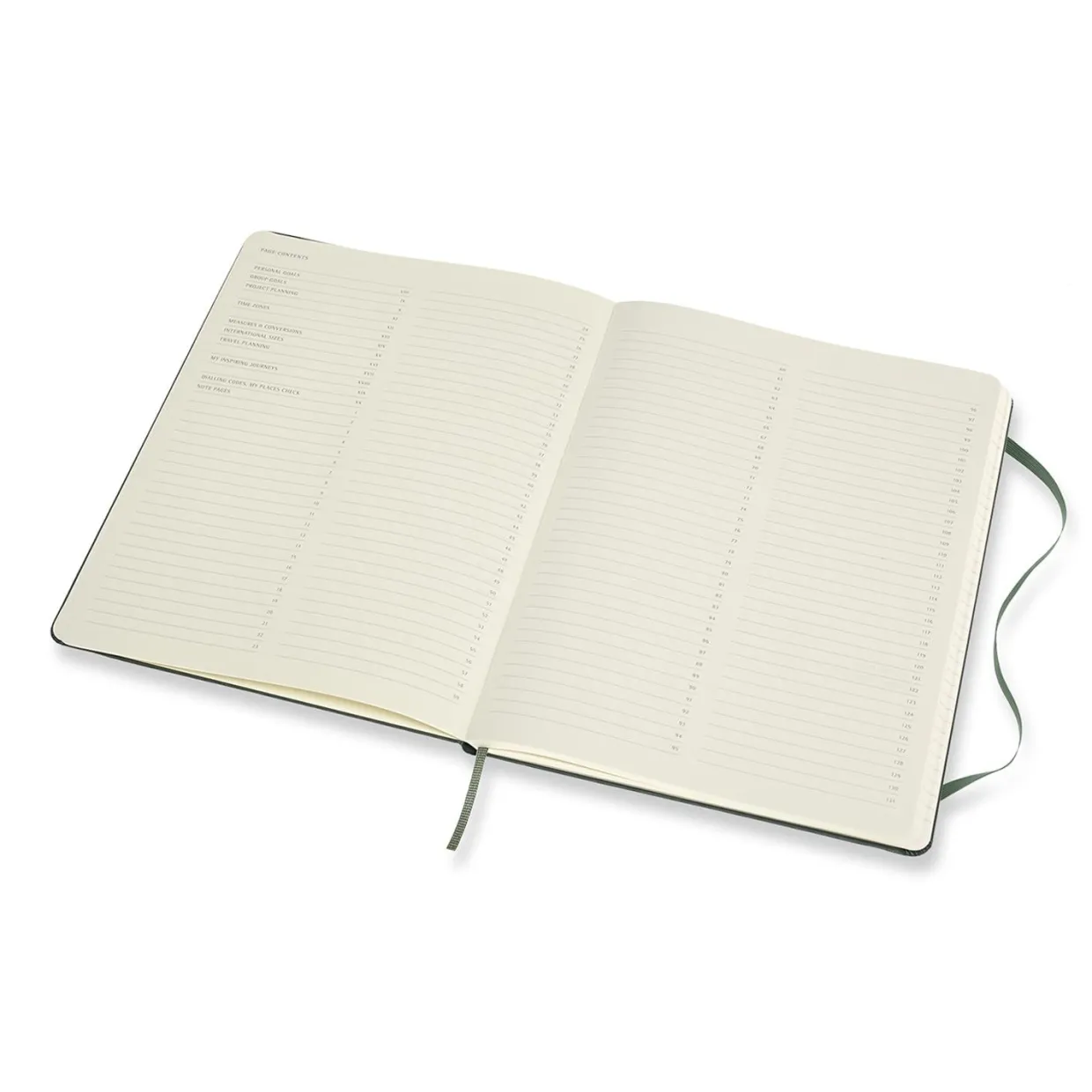 Features ribbon bookmark; contents page; number pages; detachable to-do lists; Moleskine history inside