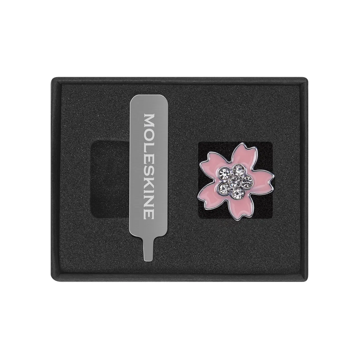 Add some seasonal flair to your notebook with Moleskine’s elegant Sakura Collection Crystal Flower Notebook Pin.