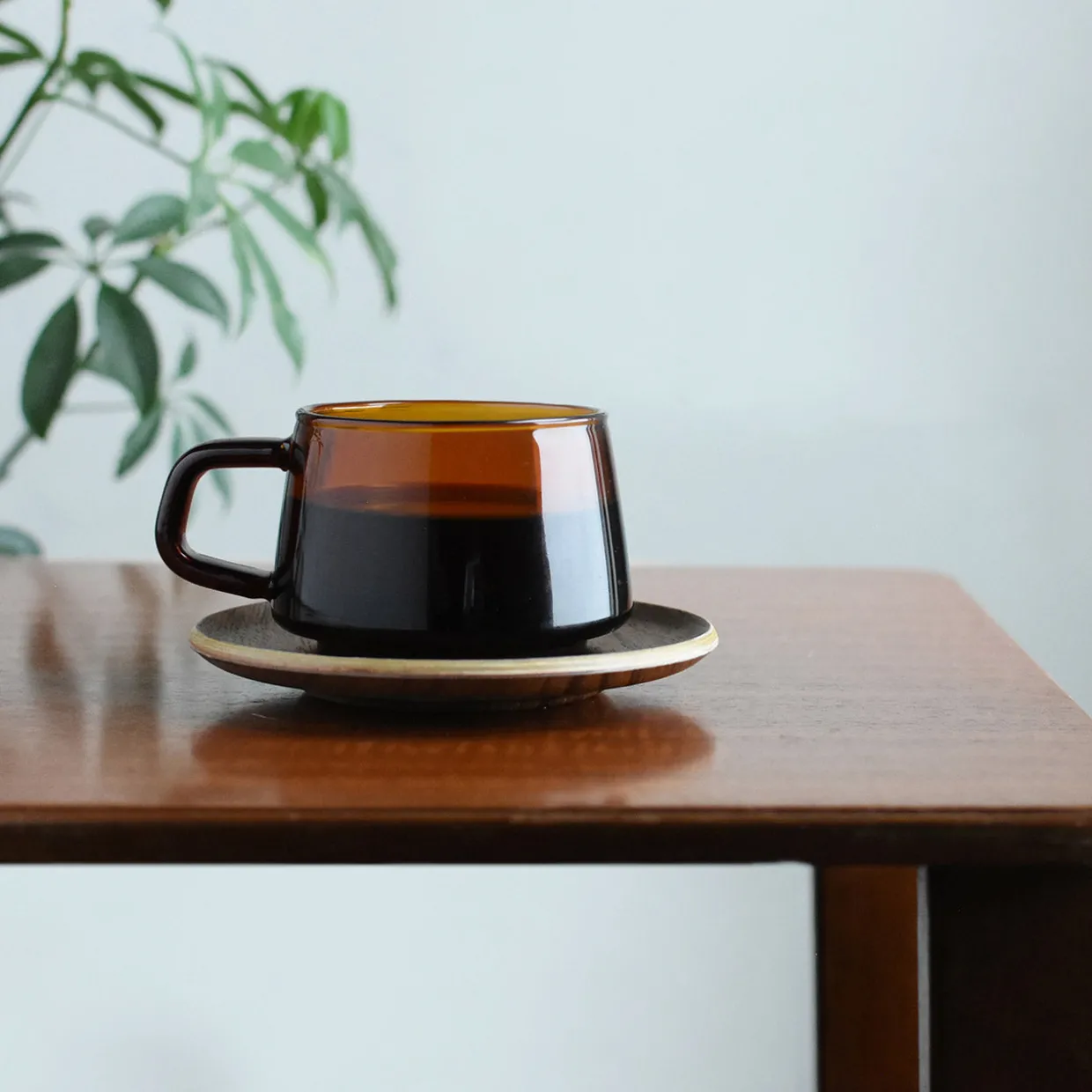 Bring a nostalgic warmth to your home with the Sepia Glass Cup and Saucer set from Kinto.
