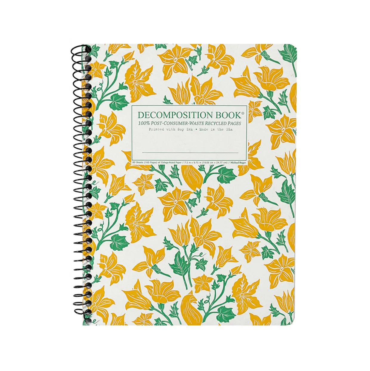 Warm your days with the bright, floral charm of Decomposition Book’s charming Squash Blossoms Large Spiral Notebook.