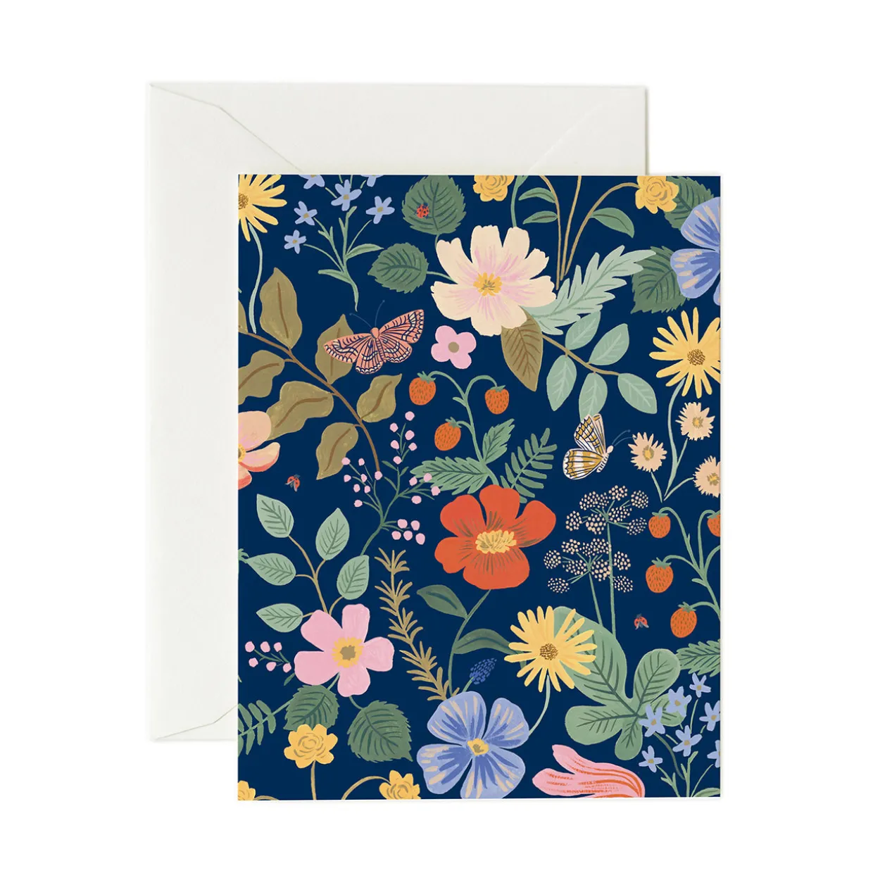 With echoes of William Morris, Rifle Paper Co.’s Strawberry Fields Navy Greeting Card is a great fit for any occasion.