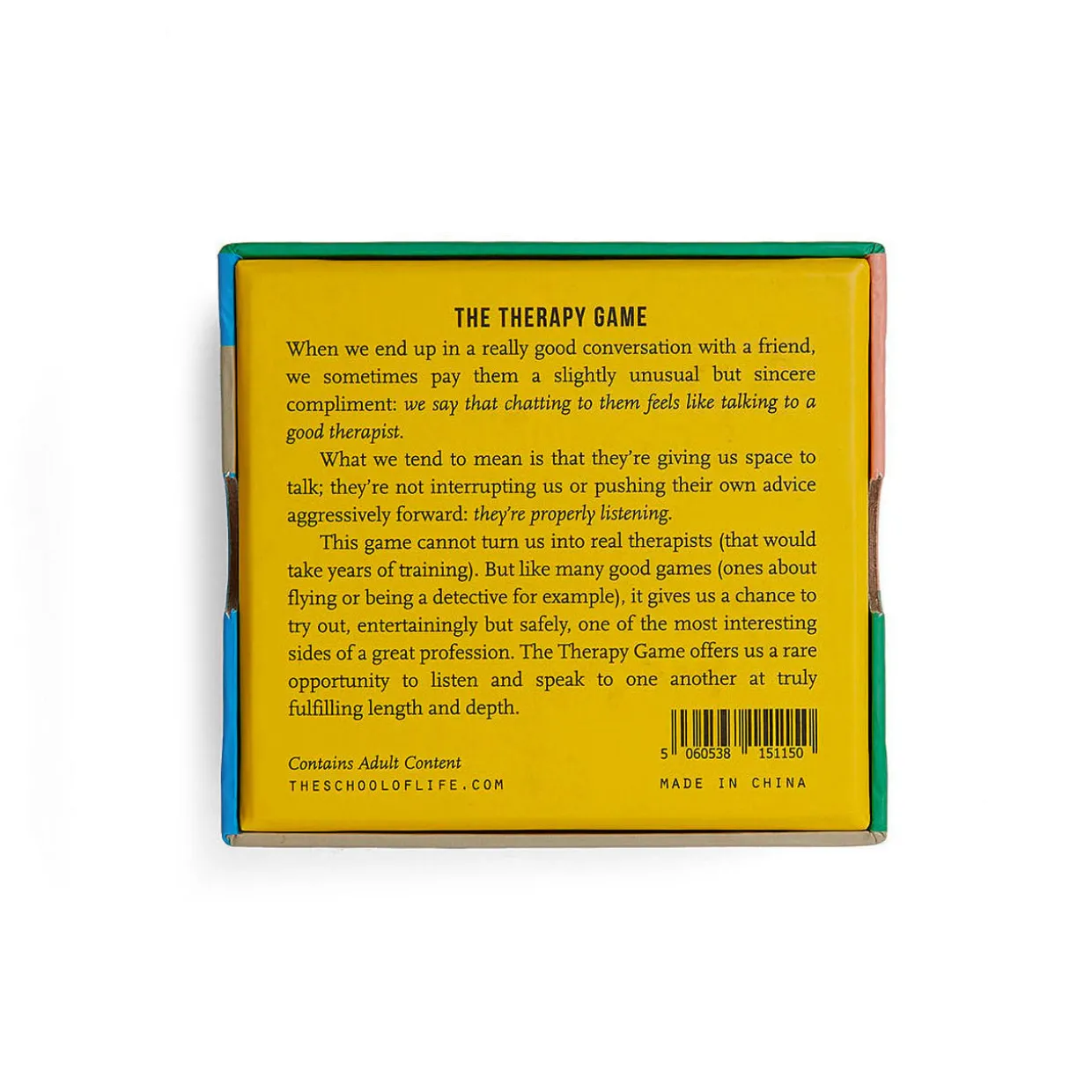 The Therapy Game cannot turn us into real therapist – that would take years of training. But like many good game (ones about flying or being a detective for example), it gives us a chance to try out, entertainingly but safely, one of the most interesting sides of a great profession. The Therapy Game offers us a rare opportunity to listen and speak to one another at truly fulfilling length and depth.