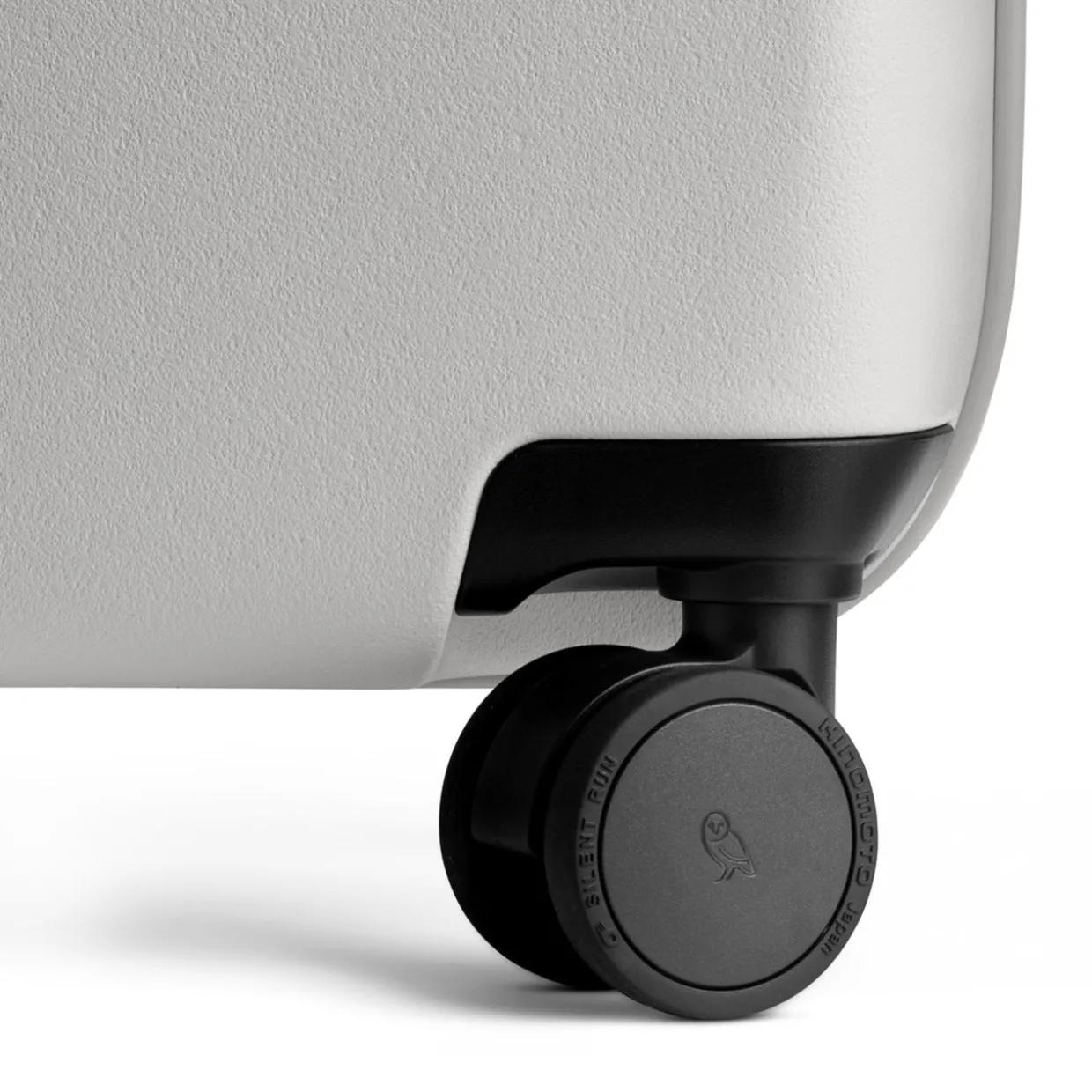 Made with an 80% recycled lightweight polycarbonate shell, the Transit Carry-On’s design keeps things light so you can get around town smoothly, with HINOMOTO Lisof Silent Run wheels to seal the deal. The shell is sealed with a water-resistant YKK zipper, and the case also sports an integrated, TSA-approved lock for extra security.