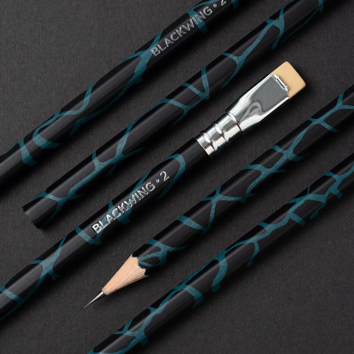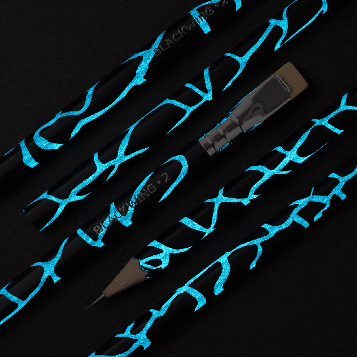 That Cohen lyric can be read dozens of ways, but mostly, it leans towards hope – a fatal flaw in the oppressive darkness that surrounds us, or a flaw revealing itself to be a superpower instead. Blackwing’s Volume 2 Pencil Set embodies that same sense of possibility, with a black pencil body riddled with fault lines that reveal themselves to glow when the night seems darkest. In addition to the glowing pencil body, the Volume 2 pencils feature Blackwing’s firmest graphite yet – a unique 2x firm graphite formulated especially for this release.