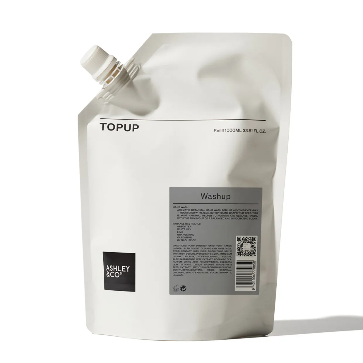 Keep your hands feeling fresh for even longer with the gentle cleansing and delightful scent of Ashley and Co’s Parakeets and Pearls WashUp Botanical Hand Wash Topup.