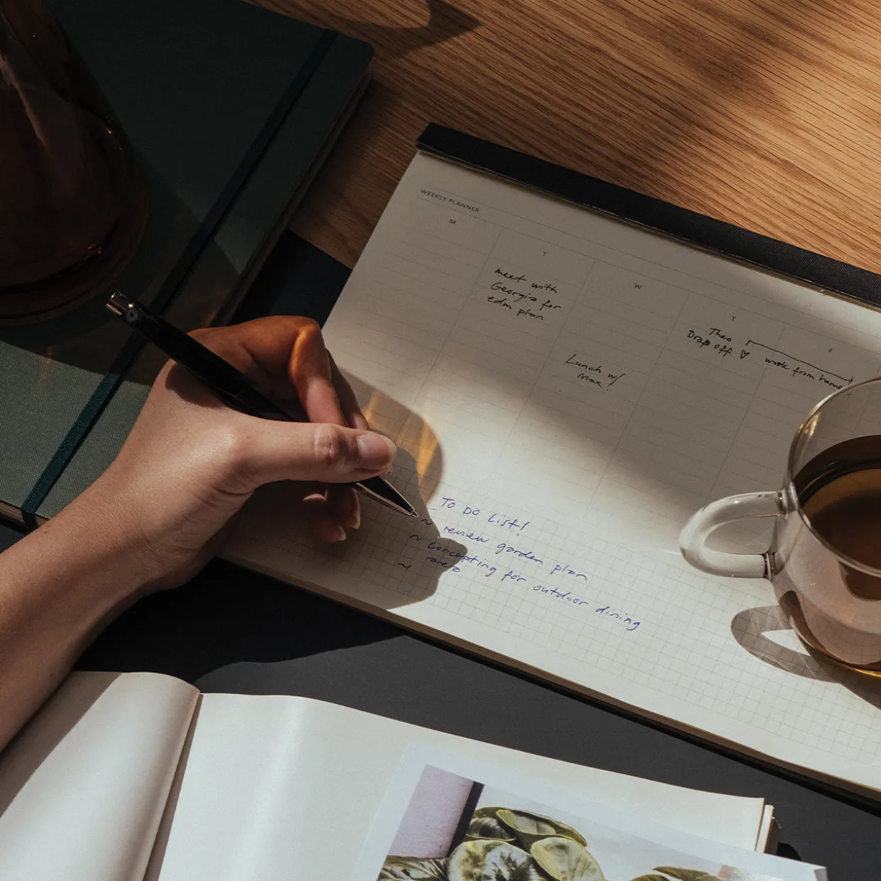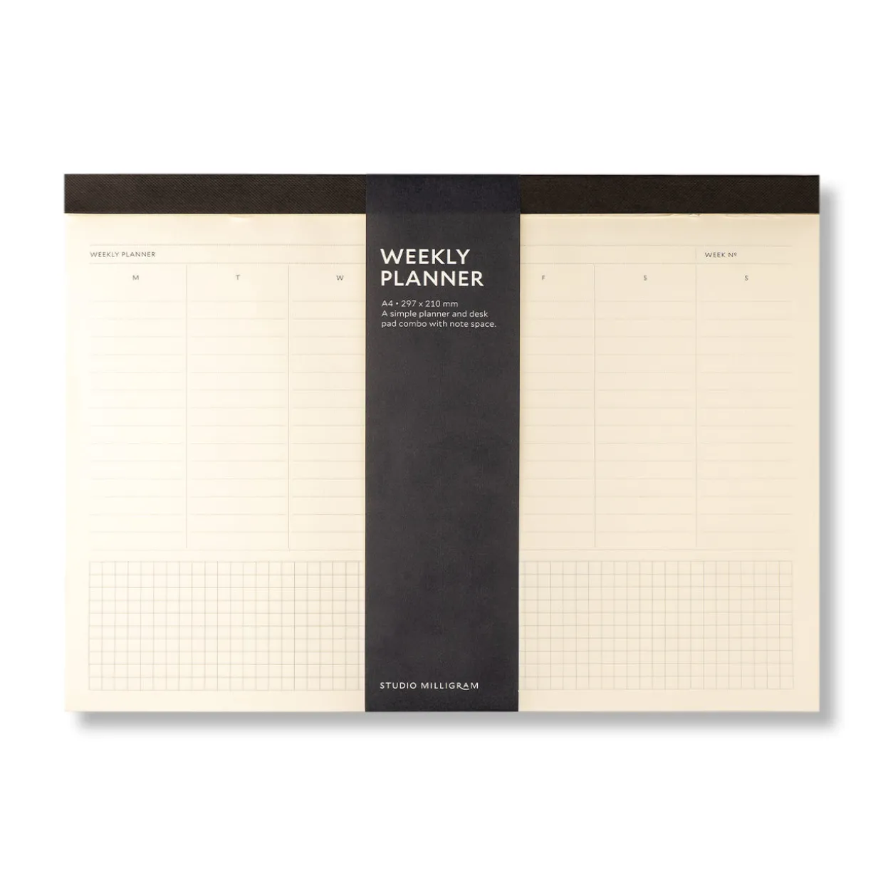 Manage your time in style with the clean, clear planning of Studio Milligram’s Weekly Desk Pad.