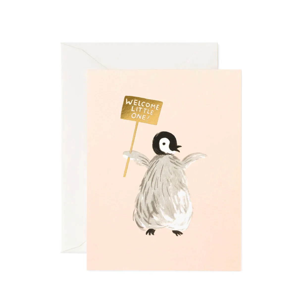 This newborn card from Rifle Paper Co features a delightful hand-illustrated design of a penguin holding up a sign that reads ‘Welcome little one!’. This illustrated card is blank inside and comes with its own high quality envelope.