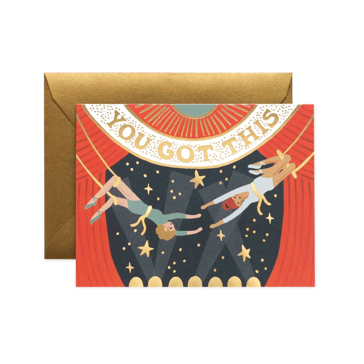 Show a loved one that you’re there to support them with the acrobatic You Got This card from Rifle Paper Co. This illustrated card is blank inside and comes with its own high quality envelope. All Rifle Paper Co products are printed on high quality FSC-certified paper stocks.